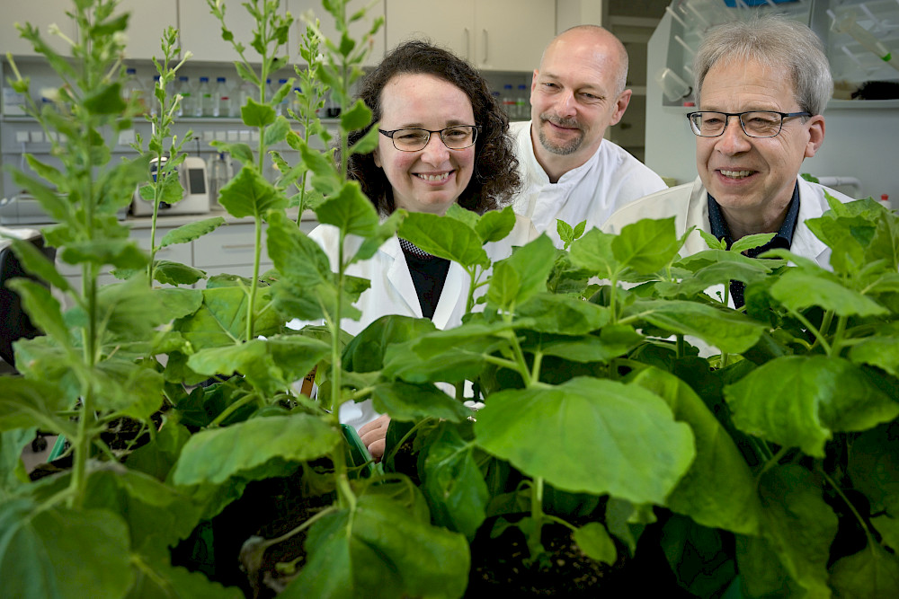 Vor einigen Monaten konnte das Forscherteam um Sven-Erik Behrens das Methodenspektrum nochmals erweitern, die pflanzliche Zellpolizei in Form von Enzymscheren gezielt zu den Schwachstellen der viralen RNA zu führen: Bei diesem Verfahren kommen keine siRNAs zum Einsatz, sondern künstlich hergestellte DNA-Moleküle, sogenannte Antisense-Oligonukleotide (ASO). „Die Wirkprinzipien von siRNAs und ASO sind zwar ähnlich, die aktiven Enzymkomplexe sind jedoch komplett andere“, erklärt Behrens. Entscheidend aber ist, dass beide Verfahren gleichermaßen wirksam sind: Rund 90 Prozent der „geimpften“ Pflanzen konnten im Laborversuch vor der Infektion mit einem Modellvirus geschützt werden.