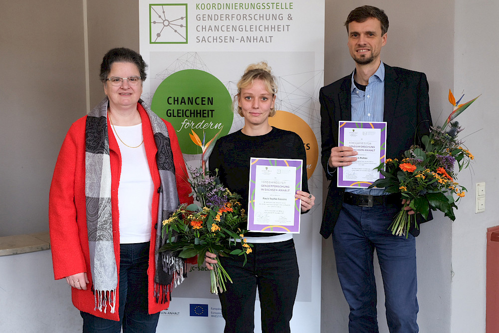 Im Anschluss zeichnete die Landesbeauftragte drei herausragende Forschungsarbeiten mit dem Genderforschungspreis Sachsen-Anhalt aus. Der erstmals im Jahr 2011 vergebene Preis ist mit insgesamt 2.500 Euro dotiert und wurde vom Gleichstellungsministerium und der Koordinierungsstelle Genderforschung und Chancengleichheit Sachsen-Anhalt (KGC) ausgeschrieben.