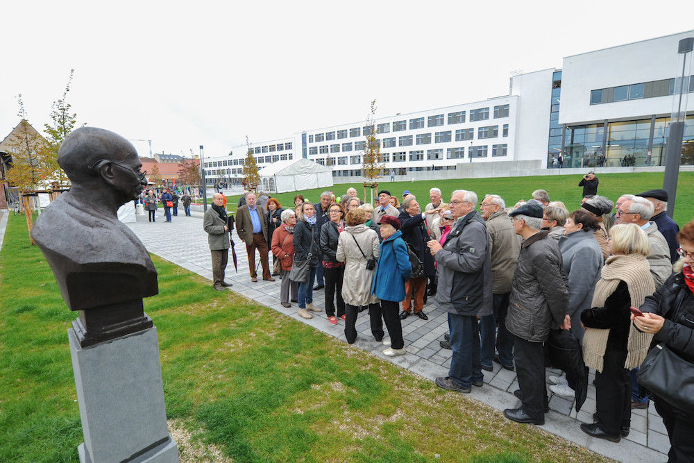 Viele Hallenser, die über die vergangenen Jahre die Baufortschritte auf dem Campus verfolgt oder darüber in der Zeitung gelesen hatten, nutzen die Gelegenheit, die Uni-Gebäude jetzt erstmals von Innen zu besichtigen. Und wer bislang den „Würfel mit den kleinen Fenstern“ von außen skeptisch beäugt hatte, wurde von der Helligkeit im Inneren des Bücher-Kubus positiv überrascht.