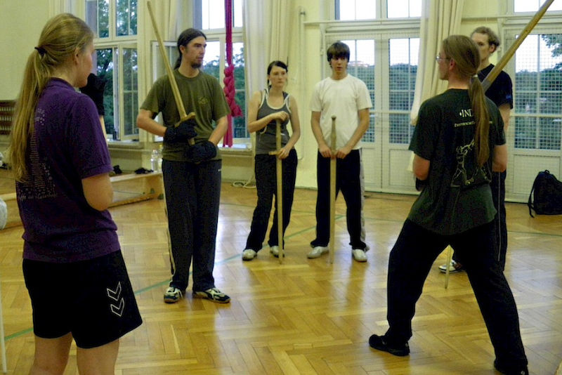 Jeden Montag um 20 Uhr stehen sich Noreen Richter und Daniel Emmerich in der Turnhalle des Instituts für Kunstgeschichte mit zwei Langen Messern aus Holz gegenüber. Für Außenstehende mag das merkwürdig erscheinen, doch für die beiden hat sich dieses Ritual zu einem festen Hobby etabliert. Sie nehmen am Unisportkurs „Historisches Fechten“ teil. „Ich brauchte einen Ausgleich zum Studium und wollte etwas Außergewöhnliches machen,“ sagt der Chemiestudent Daniel Emmerich. „Historisches Fechten ist eine sehr abwechslungsreiche Sportart. Es erfordert nicht nur Kraft und Ausdauer, sondern auch Konzentration“, fügt Noreen Richter hinzu.