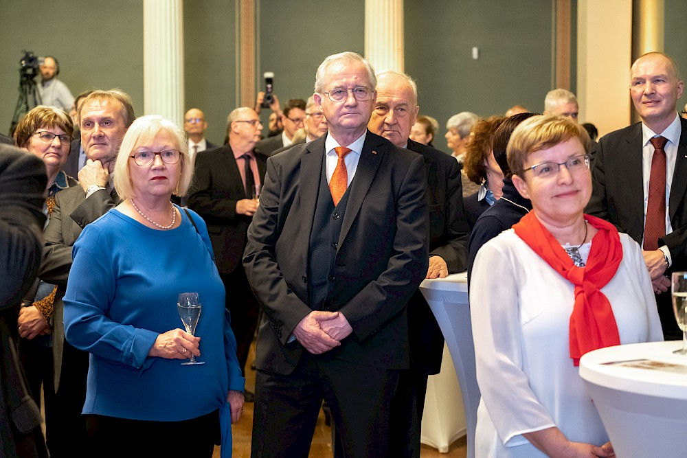 Dr. Jürgen Ude, Staatssekratär im Ministerium für Wirtschaft, Wissenschaft und Digitalisierung, dankte in seinem Grußwort noch einmal Prof. Dr. Udo Sträter, der acht Jahre lang Rektor der Universität war, und auch all jenen, die die MLU nach 1990 zu einer modernen Universität entwickelt haben und sie jetzt im Zuge des Generationswechsels verlassen. Er ging zudem auf die Herausforderungen der Lehramtsausbildung, die Finanzierung von Tarifsteigerungen, Forschungsaspekte und die in diesem Jahr anstehenden Verhandlungen der neuen Zielvereinbarungen zwischen dem Land Sachsen-Anhalt und der Universität ein.