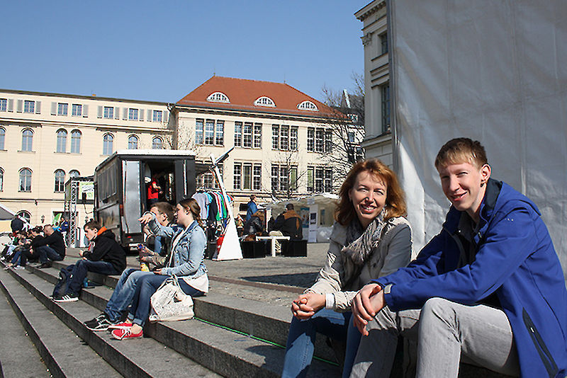 „Ich interessiere mich vor allem für das Lehramts-Studium – dazu haben wir auch schon zwei Vorlesungen besucht. Mein erster Eindruck von der Uni ist ganz angenehm, das ist ein sehr schönes Gelände. Wir wollen heute noch ins Melanchthonianum, um uns zu Stipendien beraten zu lassen.“ - Christina aus Leipzig