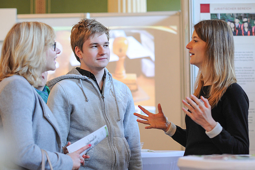 Bereits ab 9 Uhr herrschte an diesem Samstagsmorgen reger Betrieb auf dem Uniplatz und in den Hörsälen. Viele Schüler waren gemeinsam mit Freunden oder in Begleitung ihrer Eltern angereist. Besonders gefragt: Die Vorträge der Allgemeinen Studienberatung, bei denen mancher Besucher keinen Sitzplatz mehr fand.