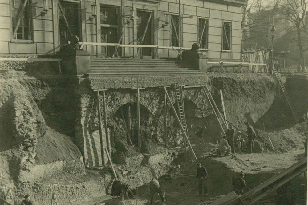 Größte Herausforderung sei der teilweise Rückbau des Bunkers gewesen, erinnert sich Foerster. „Man hat untersucht, ob man sprengen kann, ist aber davon abgekommen.“ Noch im Sommer 2001 wurde begonnen, die Eingänge wegzureißen, um Platz für die Treppe zu schaffen. „Ein Lärm, über Wochen!“, sagt Foerster über die Arbeiten, die nach seiner Erinnerung rund vier Monate dauerten. Der größte Teil des Bunkers mit seinen 1,50 bis 1,80 Meter breiten Stahlbetonwänden blieb erhalten. Dessen Belüftung und Kontrolle muss seitdem von der Universität sichergestellt werden, in ihm verlaufen unter anderem Versorgungsleitungen zwischen Hauptgebäude und Audimax. Der Umbau zur Tiefgarage war damals als zu aufwändig verworfen worden.