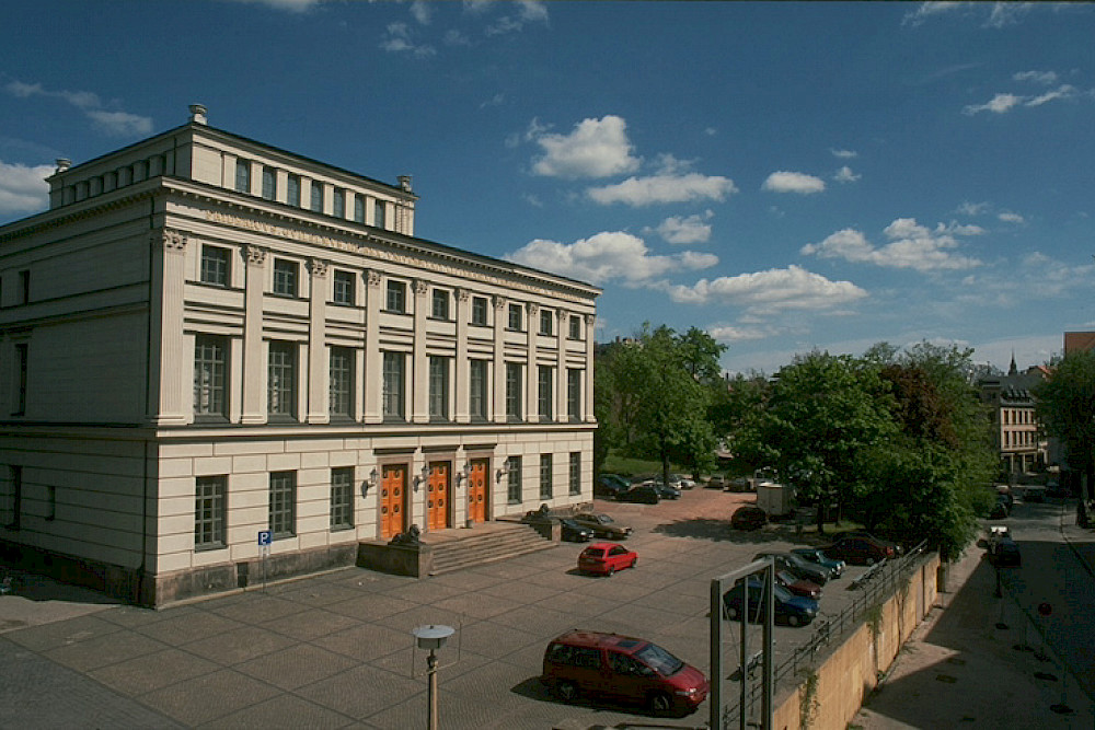 Zur Festwoche anlässlich der 500-Jahrfeier der Universität Ende April 2002 präsentierte sich der Universitätsplatz im neuen Look, der sowohl historische als auch moderne Bauten wie das 1998 fertiggestellte Juridicum und das gerade erst offiziell eingeweihte Audimax miteinander zu einem Ensemble verband. „Nach seiner Fertigstellung war das Juridicum durch die Bunkerwand getrennt vom Uniplatz – sowohl optisch als auch von der Erschließung her“, sagt Horst-Dieter Foerster, der damalige Leiter der Abteilung Bau, Liegenschaften und Gebäudemanagement der MLU. Zudem wurde der Platz nicht wirklich universitär genutzt. „Das war eine zum Teil unbefestigte Fläche mit Löchern, in denen im Frühjahr und Herbst das Wasser stand und auf der wild geparkt wurde.“ Etwa im Jahr 2000 sei die Überlegung entstanden, den Platz nicht im Anschluss, sondern direkt im Rahmen des Audimax-Baus mitzugestalten – zu letzterem hätten sonst nur um die sechs Meter Außenanlage um das Gebäude herum gehört, so Foerster. Für diese Erweiterung des Bauvorhabens seien mehrere Varianten mit dem Land diskutiert worden. Entscheidender Unterschied war laut Foerster der Umgang mit dem Bunker – abreißen oder nicht – und damit zusammenhängend die Größe der Freitreppe. Insbesondere Naturschützer votierten für eine deutlich kleinere Treppe und protestierten gegen die später umgesetzten Baumfällungen. Aber: „Die Bäume waren sehr alt. Wenn man anfängt, den Platz zu gestalten, kommt man in ihren Wurzelbereich, so dass die Bäume nur eine geringe Überlebenschance gehabt hätten“, sagt Foerster. Zudem seien sie in vielen Fällen bereits geschädigt gewesen.