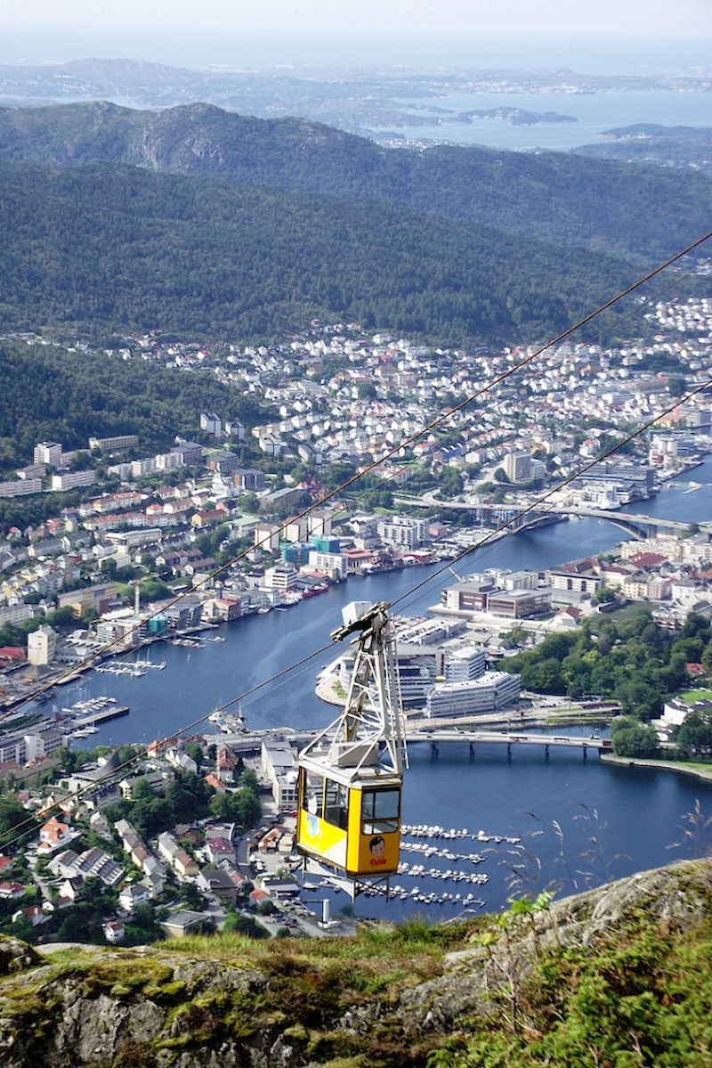 Stefanie Schönfeld: Hoch oben auf dem höchsten von 7 Bergen, dem Ulriken, hat man einen unvergesslichen Blick über die Stadt Bergen. Genießen kann man diesen Ausblick, wenn man den Berg aus eigener Kraft erklimmt, was einem wahren Abenteuer gleich kommt, oder ihn mit der Ulrikenbanen hinauf fährt. Man kann aber auch einfach die Fotografien auf sich wirken und träumt sich hinauf auf den Berg.