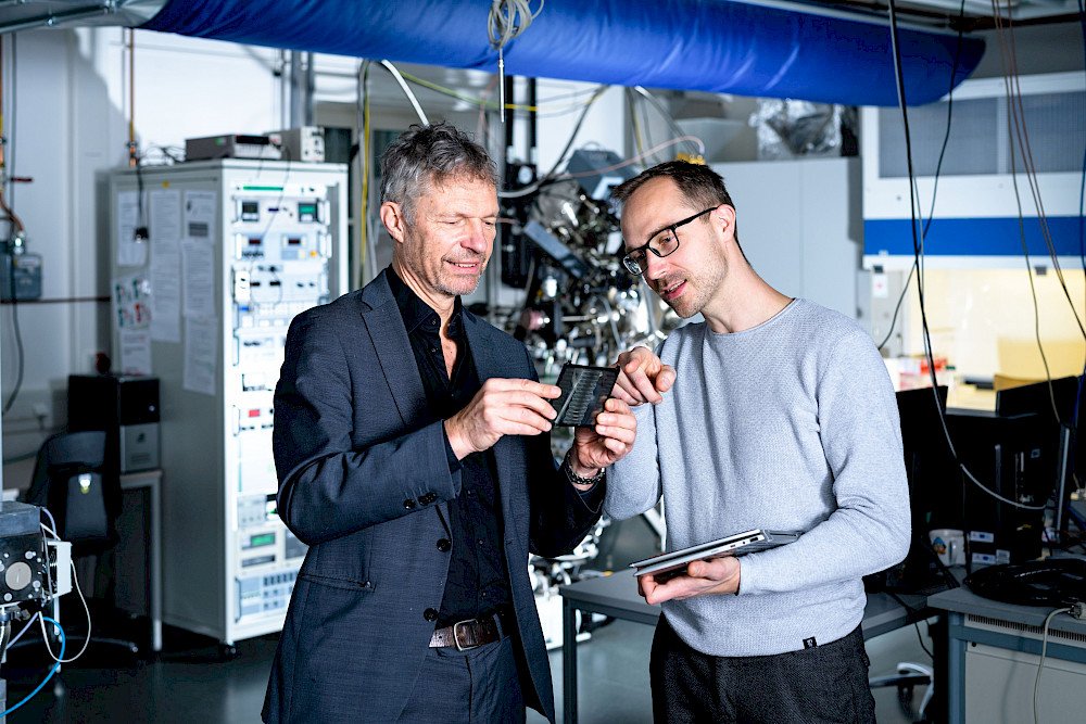 Die Arbeitsgruppe um Roland Scheer erforscht unter anderem Module, bei denen die Absorberschicht – also jener Bereich, in dem Sonnenenergie in elektrischen Strom umgewandelt wird – aus Kupfer, Indium, Gallium und Selen (CIGS) besteht. Derartige Solarmodule werden bereits industriell gefertigt. Dabei hat sich ein Verfahren etabliert, bei dem die CIGS-Legierung unter Zugabe von Natrium aufgebracht wird. Das Natrium wirkt als Katalysator für ein kontrolliertes Wachstum der Legierung und sorgt für eine höhere Konzentration von Ladungsträgern. Gegenüber vergleichbaren Dünnschichtmodulen kann die Natriumdotierung die Effizienz um bis zu 15 Prozent relativ steigern – im Ringen um optimierte Wirkungsgrade ein beachtlicher Zuwachs.