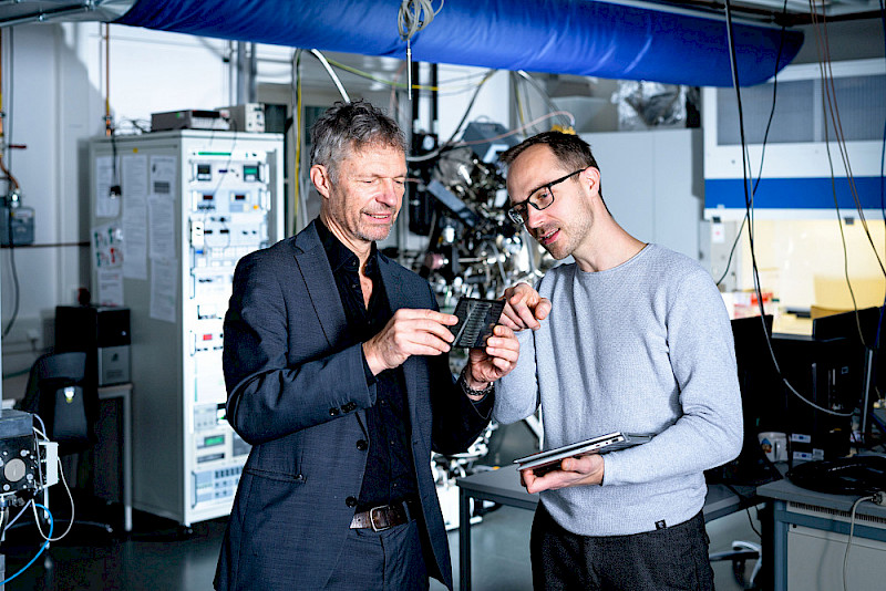 Um diese Defekte und ihre Ursachen genauer untersuchen zu können, initiierten Roland Scheer und Dr. Stefan Förster aus der Fachgruppe Oberflächen- und Grenzflächenphysik ein Forschungsprojekt, das von der Deutschen Forschungsgemeinschaft gefördert wird. Herzstück der Experimente ist eine Ultrahochvakuumanlage – abgesehen vom interstellaren Weltraum gibt es kein reineres Vakuum als in solchen Anlagen. Erreicht wird das durch mehrere Hochleistungspumpen. Zusätzlich wird die gesamte Apparatur, die etwa eine halbe Tonne wiegt, über drei Tage auf 130 Grad Celsius erwärmt. „Das ist nötig, um letzte Verunreinigungen im Inneren zu beseitigen“, erklärt Stefan Förster. „Schließlich wollen wir Fremdeinflüsse so weit wie möglich ausschließen.“