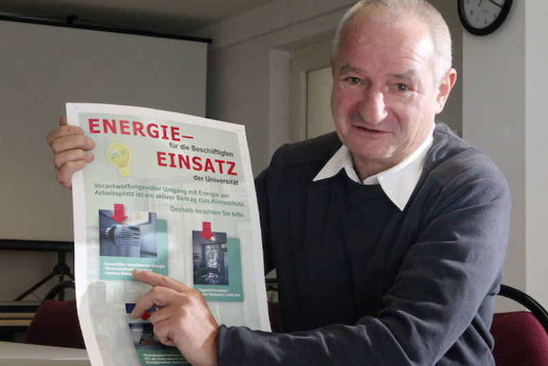 Im Uni-Technikreferat ist man davon überzeugt, dass sich Nachhaltigkeit noch an vielen Stellen erreichen ließe. Ein Problem, auf das die Mitarbeiter dabei immer wieder stoßen, ist der schlechte bauliche Zustand mancher Unigebäude, der nachhaltige Aspekte ad absurdum führt. Eine Investition zum Nulltarif wäre es hingegen, einfach das Nutzerverhalten zu ändern. Soll heißen: Nicht selten ist es der Faktor Mensch, der störanfällig ist. Da werden Computer nicht ausgestellt, private Heizlüfter auf Dauerbetrieb gestellt oder zum Herunterregeln der Raumtemperatur die Fenster geöffnet.