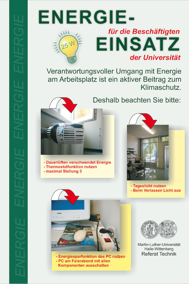 „Es hat sich viel getan“, sagt Klaus-Dieter Schubert vom Referat Technik der Universitätsverwaltung. Und das ist gut so, denn gerade in den Jahren kurz nach der Wende war das Einsparpotenzial riesig. Rund dreieinhalb Millionen Euro gibt die MLU jährlich allein für Elektroenergie aus, die gleiche Menge noch einmal für Heizenergie. Da lohnt es sich schon aus Kostengründen, nach Einsparmöglichkeiten zu suchen. Ein Beispiel, das mittlerweile längst Alltag ist: Schon vor Jahren wurde die Straßenbeleuchtung auf dem Weinberg-Campus mit Zeitschaltern ausgestattet. Dadurch kann zu vorgerückter Stunde das Licht gedimmt werden. Die dafür notwendige Investition hatte sich schon nach drei Jahren amortisiert, was nicht weniger bedeutet, als dass sich der Aufwand inzwischen auch finanziell ausgezahlt hat.