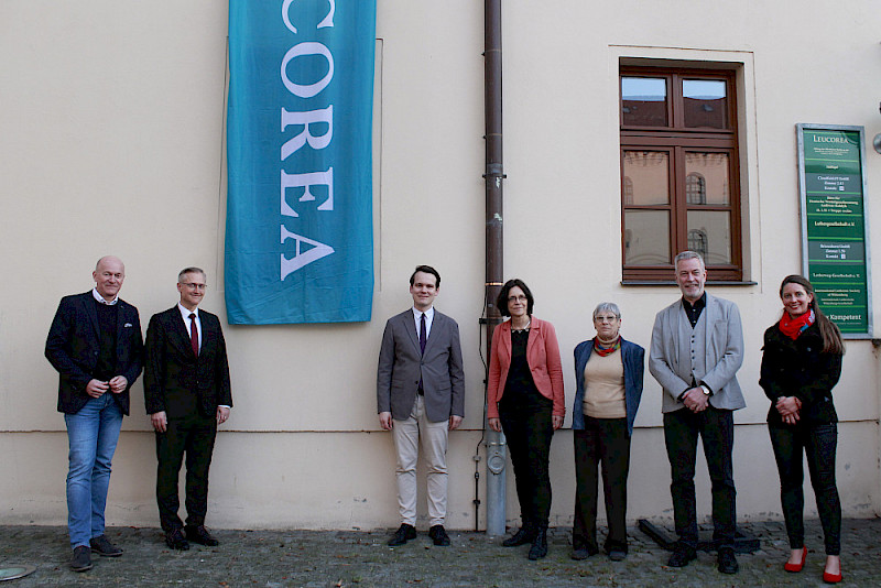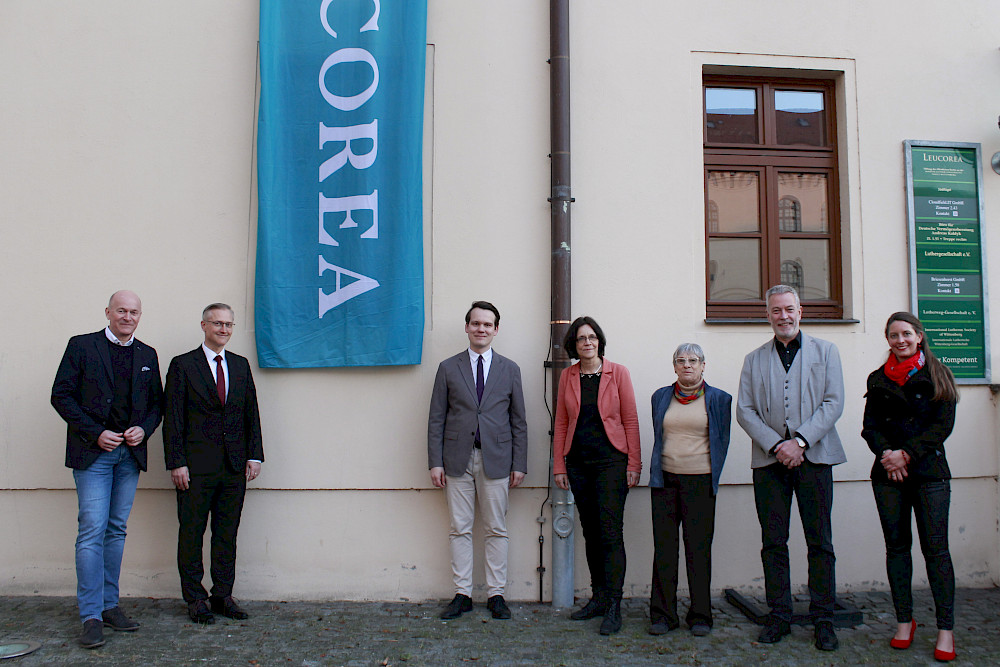 Im Anschluss daran versammelte sich das Festpublikum im Hof der Leucorea. Zu Ehren des heute fast in Vergessenheit geratenen Philosophen der Spätaufklärung wurde – dank der Unterstützung des Rotary-Clubs Wittenberg und der Stadtwerke – eine Gedenktafel am Gebäude der Leucorea eingeweiht. Mit Musik untermalt und durch Grußworte des Bürgermeisters Wittenbergs André Seidig, der Alt-Bürgermeisterin von Radis Evelin Erdmannund der Superintendentin Dr. Gabriele Metzner begleitet, fiel das Banner der Leucorea und gab den Blick auf die neue Gedenktafel frei.