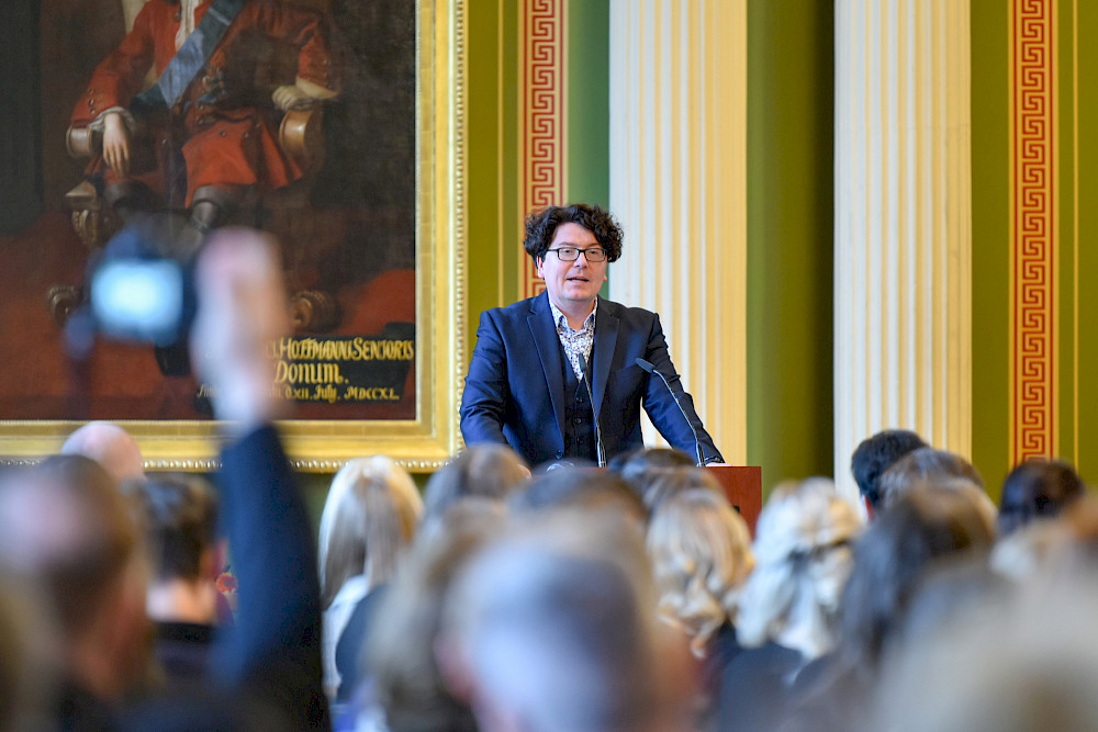 Zu Beginn der Festveranstaltung in der Aula gratulierte der Direktor des Zentrums für Lehrer*innenbildung Prof. Dr. Torsten Fritzlar den Absolventinnen und Absolventen und machte ihnen zugleich Mut für den kommenden Vorbereitungsdienst: „Die Schulen des Landes stehen Ihnen offen, Sie müssen nur hineingehen.“
