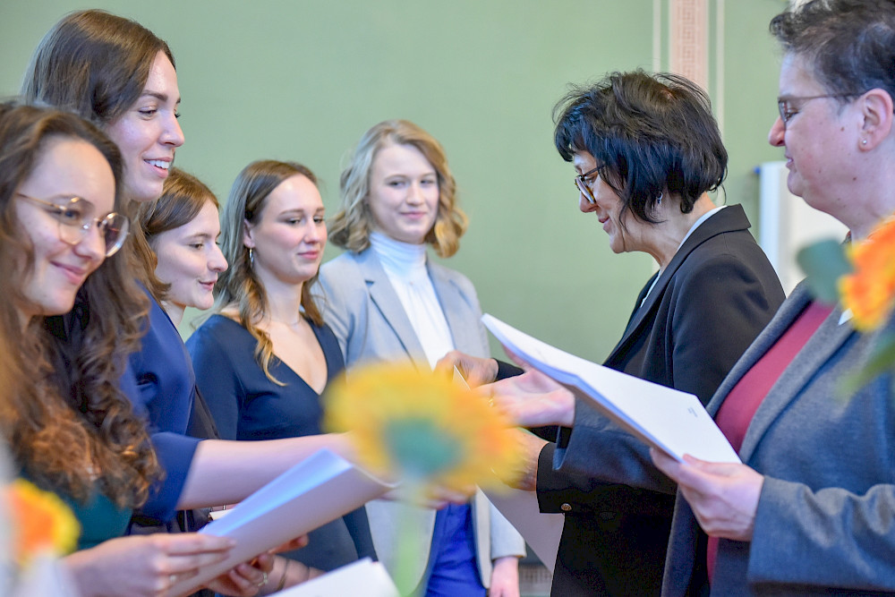 Den Glückwünschen schloss sich Bildungsministerin Eva Feußner an und betonte auch die hohe Qualität der Lehrerbildung an der Universität. An die Absolventinnen und Absolventen gerichtet sagte die Ministerin: „Sie waren bisher in den guten Händen des Zentrums für Lehrerbildung der Martin-Luther-Universität. Hier hat man Ihnen den Weg in die Schulen geebnet. Für diesen wünsche ich Ihnen Erfolg, Kraft und viel Spaß.“ Zudem sicherte sie den angehenden Lehrkräften bei ihrem weiteren Berufsweg die Unterstützung des Landes zu.