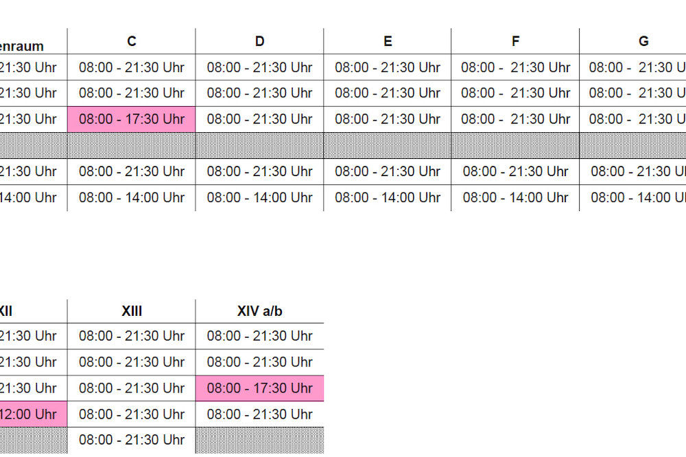Vom 27. Februar bis zum 3. März stehen als Lernräume zur Verfügung:
