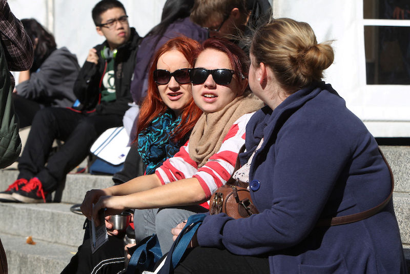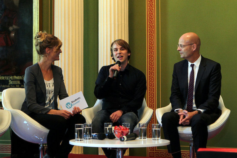 Freshmen could pose their questions in the Aula and around campus where many of the freshmen’s questions had been collected in advance. They received answers from the rector, the mayor, five students and representatives from sports and culture. Anyone who couldn’t find a seat in the auditorium was able to follow the discussion on a screen set up on University Square.