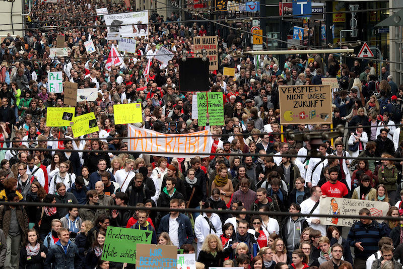 Die Proteste gehen weiter: Auch im dunklen, kalten November haben über 2000 Menschen gegen die Kürzungspolitik der Landesregierung demonstriert. Sie waren gestern dem Aufruf des Hochschulbündnis’ Sachsen-Anhalt gefolgt und nach Vorlesungsende oder Arbeitsschluss mit Laternen und Leuchten auf den Universitätsplatz gekommen. Artikel lesen
