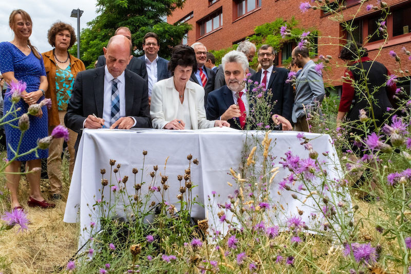 Der Institutsbereich Geobotanik hat an der MLU eine lange Tradition und prägt die internationale Biodiversitätsforschung. Mit zwei Neubauten und der Sanierung des Hauptgebäudes auf dem Gelände des Botanischen Gartens erhalten die Forschenden und Studierenden die räumlichen und technischen Voraussetzungen, um diese Erfolgsgeschichte fortzuschreiben. Heute wurden die Gebäude in Anwesenheit von Finanzminister Michael Richter und Wissenschaftsminister Armin Willingmann nach fünf Jahren Bauzeit offiziell an die Universität übergeben. Artikel lesen